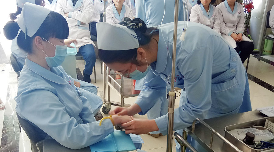 静脉输液操作过程中,选手们严格遵守患者身份识别管理制度、查对制度及医嘱执行制度,体现了我院护理人员严谨的工作态度和职业素养。操作过程中对患者关怀体贴的语言,加上熟练、精湛的手法,使整个操作过程时刻体现着人文关怀和“以患者为中心”的服务宗旨。