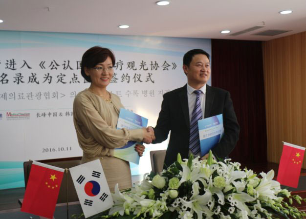 2016年10月11日下午,“长峰血管瘤治疗进入《公认国际医疗观光协会》医疗旅游名录成为定点医院签约仪式”在北京长峰医院举行。远道而来的韩国《公认国际医疗观光协会》会长徐银姬女士一行出席会议,并与北京长峰医院集团董事长汪文杰先生签订了《医疗旅游合作协议书》,授权北京长峰医院集团及其所属20家医院,进入韩国《公认国际医疗观光协会》医疗旅游名录并成为定点医院;北京长峰医院集团敦聘韩国《公认国际医疗观光协会》会长徐银姬女士担任旗下20家医院国际医疗特别顾问。自此,北京长峰医院集团成为中国第一个医疗机构的治疗项目进入亚洲有关国家的医疗旅游名录,将携手韩国《公认国际医疗观光协会》共同推动韩国公民赴华(血管瘤)医疗旅游。