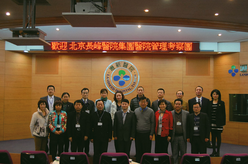 2016年 2月9日—2月16日,在集团总裁汪文杰的带领下,北京长峰医院集团一行17人远赴宝岛台湾进行了为期8天的考察学习。在此期间,考察团先后参观学习了坜新医院、长庚纪念医院、台安医院、三育健康教育中心,深入了解、感受各医院不同的医院文化、医疗管理模式、医疗服务理念及先进医疗设备等。同时,还重点接受了《HCRM(病友服务管理系统)之建置与实施》、《人力资源暨绩效考核管理介绍》、《医疗科室管理实务介绍》、《医疗体系的绩效管理》、《打造以病人为中心,IT为桥梁的医病关心》、《台湾医疗整合与区域医疗发展实践经验》等课程的培训。